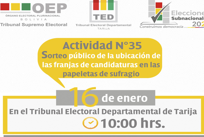 Hoy viernes en horas de la mañana, el Tribunal Electoral Departamental (TED) sorteará la ubicación de candidatos para la papeleta…